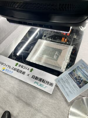 今回、特に印象に残ったのが、道路に埋め込まれた受電コイルで走行中にEVへ給電する技術の展示でした。